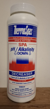 Thermospas ph/ Alcalinity DOWN hidromasajlı jakuzi ve spa suyunun hem alkalanite hem de ph değerini düşürmek için tasarlanmıştır. İdeal olarak bu değer 80 ile 150 ppm toplam alkalinite ve 7.2 ile 7.8 arası ph değerlerinde olmalıdır.