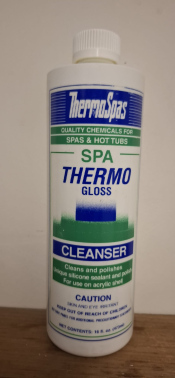 SPA AKRİLİK KORUMA CİLASI ThermoSpas Thermo Gloss ,hidromasajlı jakuzi ve swim spanızın akrilik yüzeyine kimyasal olarak bağlanan reaktif silikonlar içeren yenilikçi bir ciladir. Bu ürün sayesinde spanızın akrilik yüzeyi sert, parlak, dayanıklı ve koruyucu bir tabaka ile kaplanır. Bu ürünün kullanımı kir tabakasının oluşmasını engeller. Thermo Gloss su geçirmezdir ve güneş ışığından etkilenmez.